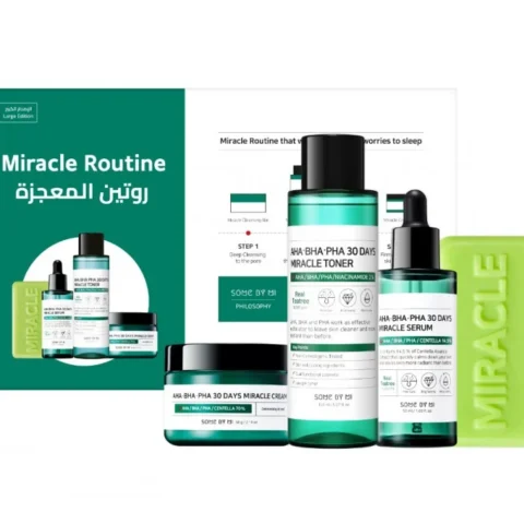 مجموعة المعجزة الكورية الأحجام الكبيرة اكبر 5 مرات ، روتين عناية كوري متكامل من منتجات المعجزة الكورية سوم باي مي للعناية بالبشرة المعرضة للحبوب وعلاج حبوب البشرة تحتوي على:
