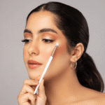 2. طبقي ظلال العيون أو الإضاءة باستخدام الفرشاة بحركات ناعمة ودائرية في زوايا العين أو الجفون.