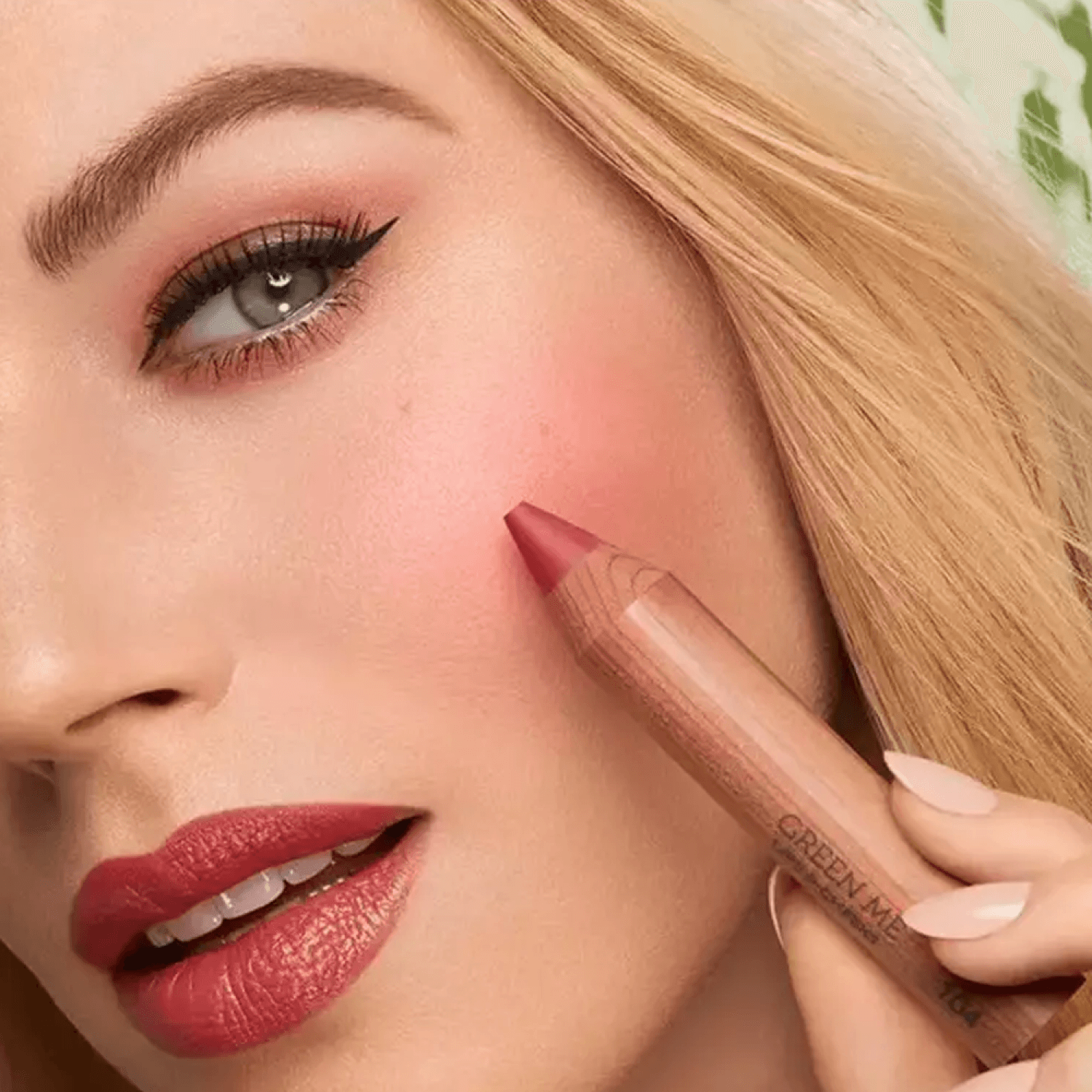 احصلي على لمسة جمالية ناعمة وطبيعية بمنتج واحد فقط! قلم روج وبلاشر جرين مي من كيكو يمنحك لونًا دافئًا ومشرقًا لشفتيك وخديك بفضل تركيبته النباتية المبتكرة.